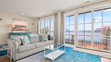 Beautifully furnished four level townhouse with elevator in one of Baltimore's premier communities. Spectacular views and 4160 square feet of living space. 3 bedrooms, 4.5 baths in the heart of Canton. First floor family room with fireplace, full bath and two car garage. Second floor living room with fireplace, a chef's kitchen with Viking appliances and granite counter-tops, dining area and half bath. Third floor has a library, 2 bedrooms, 2 full baths and a laundry room. 4th floor master bedroom suite has a fireplace, walk in closet and large bathroom with separate shower stall and deep soaking tub. Elevator services all four floors. Exterior Security system, hardwood floors and recessed lighting throughout. Two-zone air conditioning, two decks. Small yard to pedestrian promenade along the water's edge. Walk to Fells Point, Canton Square, Harbor East and the Inner Harbor, or take the water taxi. Wonderful restaurants, bars and shopping close by. Easy access to downtown, Camden Yards and M&T Stadium. Minutes to I-95 and I-895.