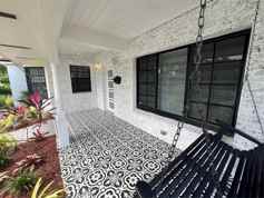 a 10,800 square feet lot. One of the bedrooms has a private entrance with its own bathroom. The home is secured with impact windows and doors for peace of mind and storm protection. This home features updated kitchen and bathrooms, dual rain shower, new flooring, smart appliances, a coffee station with a wine cooler, central AC, and various other updates. Spacious backyard with pool, outdoor shower and beautiful sitting area nestled under a pergola. Plenty space for entertainment.