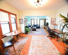 This conveniently located and quality furnished home is a well maintained, adorable & cozy, 2 bedrooms, 1 bath bungalow with two-season front porches, both front and back. The central air conditioner will keep you cool during the warm seasons. A brand-new queen mattress in one bedroom and a brand-new twin and full-sized mattresses on the bunkbed in the second. The modern and industrial designed living space provides a quality furnishing such as a desk and TV console from pottery barn, a quality Flex steel sofa next to Crate and Barrel sofa that are wrapped around an Ethan Allen coffee table. The Yamaha stereo allows for quality sound should you feel like some music. The Woodleys dining chair and table are simply beautiful and set nest to a pleasant window setting. Plenty of sun light in this home for you enjoy. The hard wood floors provide vintage feel and mixed with the modern/unique art from Thailand (peacock) and Africa (giraffe) give off a super cool feel. The modern light fixtures bring the industrial and current vibe to the almost 100-year-old home with beautiful and original oak woodwork. There is an attached garage with a deck on top as well as a fenced in yard. The new washer and dryer in the clean basement along with another shower allow for guests to have their own bathroom. Being just a few blocks to Gordan Drive allows for quick access to everywhere.