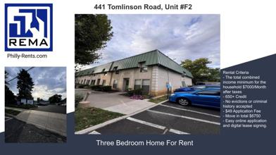 441 Tomlinson Rd #F2, Philadelphia, PA is a 3 bedroom, 2 bathrooms apartment for rent. It is located in the Somerton neighborhood of Philadelphia. It has apartment amenities including central heat, in-unit laundry, dishwasher, microwave, and air conditioning.