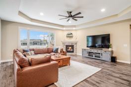 Built in 2023, split bedroom ranch boasts 3 beds, 2 full baths. Outside - landscaping, covered front porch & back patio, Rain Bird in-ground irrigation, large back yard, & oversized attached 3 car garage. Inside - open floorplan w/ LVP flooring, white trim & warm earth-tone color palette. Living w/ 10' tray ceiling, picture windows (w/ remote powered window shade!) allowing natural light, & gas log fireplace. Living open to kitchen/dining. Kitchen has island w/ seating, abundant cabinetry, SS appliances & walk-in pantry. Dining accesses patio via sliding glass doors. Master bedroom w/ tray ceiling, large closet & ensuite w/ dual sink vanity & tiled walk-in shower. Remaining 2 bedrooms share bath w/ tub/shower combo. Laundry w/ utility sink by master. Other features: modern lighting, 50 gal water heater, hi-efficiency furnace/ac, & wired for EV. Close to Pufferbelly Trail, Salomon Farm, & mins from PRMC w/ easy access to shopping & dining.