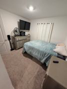 Furnished Room: Ready with a bed, TV, sound system, dresser, nightstand, and closet.