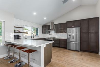 Welcome to your dream home! This stunning, furnished 3-bedroom, 2-bathroom residence has been beautifully upgraded for modern living. Step into an open, airy floorplan where a spacious great room features vaulted ceilings, warm wood-look tile flooring, and a decorative fireplace that creates a cozy ambiance. The gourmet kitchen will delight any chef with custom cabinetry, ample storage and countertop space, stainless steel appliances, a convenient pot filler, and a large breakfast bar perfect for entertaining. The luxurious primary suite is a true retreat, complete with a large walk-in closet, spa-like bathroom featuring a massive tiled walk-in shower, and private access to the backyard. Outside, unwind on the extended patio or by the sparkling pool with pool service included. Solar panels cost just $200/month - enjoy significant energy savings! Wifi must remain active for solar panel use.