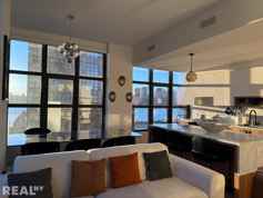 Located at The Huron, the newest luxury condo development on Greenpoint's waterfront, the residence offers split two bedroom layout, beautiful open kitchen with honed European marble countertops, custom-made walnut cabinets, a large island with seating and top of the line Miele appliances. The apartment also features beautiful wide-plank oak flooring throughout, modern marble bathrooms with heated floors in the primary bath, high ceilings, and ample storage. Massive loft style south and west facing windows equipped with motorized blinds allow lots of direct sunlight throughout the day, and perfectly frame iconic Manhattan skyline and water views.