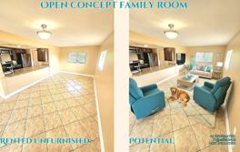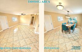 BIG DOGS WELCOME! Discover comfort in this spacious (1200 ft), sunny 2-bedroom apartment in a private garden setting with ample green space for your furry family members. This recently renovated home features an expansive Great Room flowing into a dream kitchen, complete with a 10ft granite countertop, stainless steel appliances, and an 8ft pantry. The open layout allows for versatile furniture arrangements, making it easy to create your ideal living, dining, or office areas. A full laundry room with washer/dryer and a convenient rear entry makes daily life easy. Two generously sized bedrooms, each with huge 9’ closets. Two updated bathrooms offer granite vanities and plenty of storage. Enjoy the ease of tile floors throughout. This central Cape Coral location (Del Prado & Hancock) provides direct, toll-free access to Ft. Myers & Charlotte County. Accordion shutters provide hurricane protection. Extensive yard for pets and outdoor activities, offering privacy and a serene environment.
