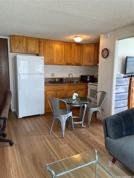 Beautiful golf course view fully furnished 1 bedroom 1 bath unit together with 1 covered parking stall. Newer refrigerator, stove, flooring in living room, toilet, vanity. Great location near airport, shops and eateries.