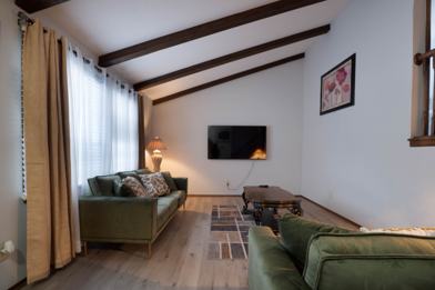 The main floor boasts a living room with a beamed ceiling, and an eat-in kitchen complete with a center island. Upstairs, you'll find 3 generously sized bedrooms with ample closet space and a renovated full bathroom.