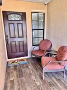Discover this beautifully spacious 3 bedroom, 2 bathroom home featuring a 2 car garage and an enclosed Florida room that adds flexible living space ideal for work, relaxation, or entertaining. The primary suite offers a private ensuite bathroom and a generous walk in closet, creating a comfortable and inviting retreat. The updated kitchen features granite countertops, stainless steel appliances, wood cabinetry, and a cozy eat in area perfect for casual dining. A formal dining room with a wet bar provides an excellent setting for hosting guests. This home feels bright and airy with vaulted ceilings, abundant storage, and hurricane impact windows throughout. A charming screened front patio welcomes you, while the private backyard offers a peaceful escape with no rear neighbors,