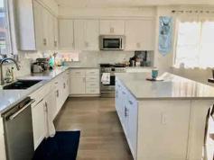- Large gourmet kitchen furnished with kitchen island, stainless steel appliances (fridge, stove, microwave, dishwasher)