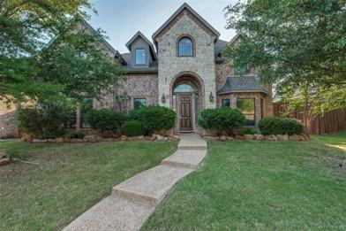 Beautiful traditional home located in the prestigious Shaddock Creek Estates in Frisco ISD. Hand scraped hardwood floors arched entryways and an elegant spiral staircase welcome you. The spacious kitchen features granite counters, SS double ovens, microwave and dishwasher, rich wood cabinetry, butler's pantry and is plumbed for gas. It is open to the living area which has a gas fireplace, built ins, 2 story soaring ceilings, Plantation shutters and an abundance of natural light. A coveted feature is a guest bedroom and full bath on the first level. The primary suite has a sitting area,