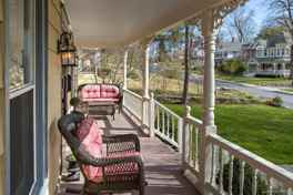 Delightful C1900 Farmhouse Colonial located on the prettiest streets in the Village. Updated, renovated, & designed to perfection. There are period wood flrs, an updated airy kitchen w/quartz counters, open to a country dining area w/sunny bay window & back dr to patio. The large LR runs front to back w/deep windows, lots of light & sliders to the patio. The covered front porch w/vintage millwork adds to the character of this home & it's perfect spot to watch the world go by! Upstairs 3 bright BR's & a luxurious, spacious bathroom w/marble topped custom vanity, double sinks & restored wide plank flrs. The walk up attic is finished storage (not incl. in sq. ft.) w/custom built ins, carpet & skylight, perfect for today's work/life needs, including high-speed network & TV. Outside, a large paver patio, ideal entertaining space, complete w/tiered, landscaped gardens, fully fenced, a chicken coop, 2 storage sheds & playhouse. Come home to this country oasis in the most convenient location! Additional Information: HeatingFuel: Oil Above Ground. Garbage is $290 annually (2025), water $62.50 & sewer $158.00 basic quarterly.