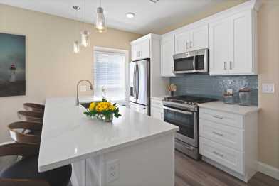 Luxury one bedroom apartments now available in Weymouth Landing. Each unit boasts a sun-filled open floor plan, with well thought-out custom kitchen and living space. The designer kitchen offers quartz countertops, with a large peninsula and top-of-the-line appliances that make this a kitchen a space you’ll want to spend time in. Each unit provides large closets, IN -UNIT WASHER and DRYER, recessed lighting, state-of-the-art air filtration system, basic cable television, Wifi and central heat and air conditioning. Solid surface flooring and noise canceling material throughout the building offer the attention-to-detail usually found in high end Boston condominiums. 165 Washington St also offers off-street garage parking. The top-of-the-line security system throughout offers you peace of mind in your new home. 165 Washington St is close to the MBTA Commuter rail, shops and restaurants and is easily accessible to Rt 3 and Rt 93. With so many challenges in the world today, make home EASY at 165 Washington St.
