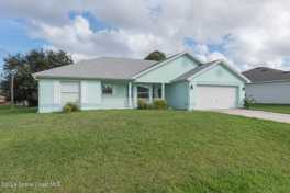 Palm Bay has a cozy home to consider as your next residence! You must see this adorable home with the perfect floor plan. Open and comfy with separate dining room nook area. Large entertaining kitchen and countertop extended overlooking main living areas; provides bar space and extra seating. Home has updates throughout and is well maintained, creates a seamless and easy to maintain space. Master suite provides combo tub and shower with spacious walk-in closet. Unique touches like the natural blue pop of color vanities, provides a sophisticated and updated flair. Stunning distressed wood luminant throughout, combined with the refreshing low tone paint and designs, makes this a true Florida Home. Both style and comfort are here for the perfect rental property. Nice back patio to enjoy the Florida weather year-round. This home is conveniently located of San Fillipo in SE Palm Bay, closer to Malabar and I95.