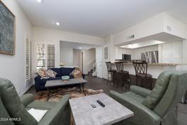 Exceptional seasonal/corporate furnished rental home. Excellent Scottsdale location, located in the Racquet Club community within Scottsdale Ranch. The 3 bedroom / 2 bath townhouse is equipped with everything you need, so you can just just show up and enjoy everything Scottsdale has to offer. A private walkway lined with greenery takes you to the front door where you'll step inside to a warm, open floorplan with living/dining area, efficiently designed kitchen with white cabinets, granite counters & stainless appliances plus outside private patio. Powder room & large laundry room complete the first floor. Upstairs you'll find spacious bedrooms with private balconies on each side of the home. Enjoy the amenities that include tennis & pickleball courts, 5 Pools, Fitness Center & Yoga.
