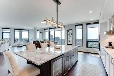 Mill District penthouse with stunning views, amazing finishes, and an incredible balcony now available at Legacy Condos! This open and modern 2BR+ Den features walls of windows facing the south and east, rich dark hardwood floors, and an open concept floorplan perfect for entertaining. Gourmet kitchen has top of the line appliances, beautiful backsplash, and tons of countertop space and cabinetry. Both luxurious bedroom suites provide stylish bathrooms and walk-in closets with custom built-in organizers. You’ll love the large, covered balcony with unmatched views and a natural gas grill hook-up. Legacy Condos is nestled steps from Gold Medal Park and the riverfront while providing resort level amenities: pool & jacuzzi deck; separate community deck with lawn games, grilling stations and fire pits; massive community room; cardio center with sauna; separate weight room; playground; game room with golf simulator; indoor/heated guest parking; and 24/7 front desk staff. Included with rent: 2 indoor heated parking stalls, water/sewer/trash, gas, heat & A/C. Tenant responsible for electricity and basic cable & internet package for $65 per month. Application fee: $78 per adult, Admin Fee: $150, HOA Moving fee: $700. Occupancy fee is $175 per lease. Deposit is one month's rent.