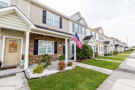 This modern 2-bedroom, 2.5-bathroom townhome features a carpet-free first floor and an expansive living area. The open-concept layout effortlessly links the living space to the kitchen, accentuated by a chic stone wall that brings a touch of sophistication. The family chef will love the contemporary kitchen, which includes stainless steel appliances, a cozy dining nook, and a pantry for ample storage. Step outside to find a delightful patio and low-maintenance astro turf in the backyard. Enjoy your privacy in a fenced yard that also offers a designated pet area filled with cedar mulch. Additional highlights of this home include ceiling fans in both the living room and bedrooms, private bathrooms for each bedroom, and a spacious primary suite featuring a walk-in closet. For added convenience, there's a laundry area equipped with a washer and dryer located on the second floor near the bedrooms. Nestled in a side walked community this home is ideally positioned just minutes from the beach and Camp Lejeune's Stone Bay, this is an opportunity you won't want to miss - make this Holly Ridge Townhome your new home!