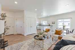In this refined townhome, security and peace of mind come standard, with a video doorbell, KWIKSET Smart Lock keyless entry, and complimentary 24-hour security monitoring provided by Gemstone Property Mgmt. The premium appliance suite, featuring a double-door refrigerator with water dispenser, an electric range, two-drawer dishwasher, and microwave, enhances both beauty and function in the kitchen. For seamless connectivity, the complex is fiber-wired, only an additional $75 per month.