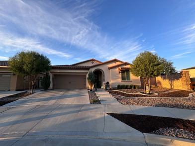 This stunning corner lot single-story, 4-bedroom home in Audie Murphy Ranch offers keyless entry and an inviting glass front door. Step inside to find a spacious layout featuring a modern kitchen with a large quartz island, abundant cabinets, ample counter space, and a massive walk-in pantry. The kitchen seamlessly flows into a generous family room and dining area, perfect for entertaining.