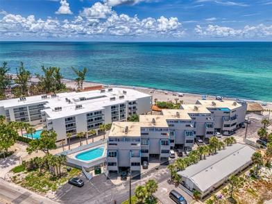 Listing reflects peak season monthly rate - it is available as a weekly rental (weekly pricing varies)! Imagine waking to the soothing sound of waves and stepping directly onto the sand from your freshly updated, end-unit 2-story condo, perfectly positioned mere steps from the shore for unparalleled beach access. This spacious layout offers distinct levels, providing enhanced privacy and ample room to spread out. The sun-drenched sanctuary boasts an open-concept floor plan flooded with natural light, creating an airy and inviting atmosphere. The fully equipped, modern kitchen is ready for culinary adventures, complemented by high-speed Wi-Fi and Smart TVs throughout for seamless entertainment. Upstairs, a convenient minibar/fridge area features a queen sleeper sofa and its own full bathroom, with pocket doors that can transform this space into a private, third sleeping area. Retreat to one of the two luxuriously appointed bedrooms, each designed as a serene haven for comfort and relaxation. With three private balconies (two on the first floor, one upstairs), you'll savor the invigorating ocean breeze and breathtaking views, perfect for morning coffee, sunset cocktails, or simply unwinding. Your stay also includes a private parking spot and access to a refreshing community pool. Plus, you're just a short walk to local restaurants offering outdoor seating and live music, making this the ultimate choice for both serene relaxation and thrilling adventures – don't miss your chance to book this unforgettable beachfront experience!