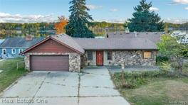 Discover lakeside living at its finest! This charming ranch on 0.51 acre sits on approximately 85 feet of frontage on all-sports Loon Lake. Step inside to rich stained-wood trim, solid six-panel doors, a stained-glass transom, expansive picture windows framing stunning water views, decorative beams and built-in display cabinets — character and warmth abound. The open family room features a wood-burning fireplace, and the kitchen offers granite countertops and stainless steel appliances. Recent updates include a new roof (2019), furnace & AC (2021), and dishwasher (2022). Outside, the lush yard slopes gently to the lake, with a utility shed by the water and its own dock — just bring your boat! Across the lake are protected wetlands, so your vista is nature-filled, not crowded. Just a short walk to Gilbert?Willis?Park (with tennis, pickleball, basketball, hiking trails and playground), and within minutes to Proud?Lake?State?Recreation?Area and the Huron?River. Excellent Wixom location, with optional lake association for access to a boat launch and sandy swim beach. Don’t miss this rare gem. B.A.T.V.A.I.