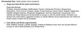 Two Pet Limit. $35/pet/month with breed and species restrictions.