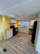 Single-wide mobile home with one bedroom, one bathroom with walk in shower, wood-look laminate flooring throughout, kitchen with electric range, fridge, and dishwasher, living room with laundry closet and furnished stackable washer/dryer (Luxury Item) . Central heat and air. Owner must approve all pets.
