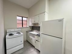 This cute studio apartment has a good sized kitchen and bathroom and has plenty of storage space.