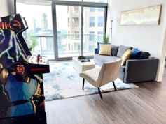AMENITIES INCLUDED: 3 Flat-screen 4K Smart HDTV’s with the latest streaming apps, free internet/Wi-Fi, Master bedroom with a king bed and in-suite master bathroom, guest bedroom with a queen-size bed, walk-in closets, smart lock, fully equipped kitchen with stainless steel appliances, granite countertop, in-suite washer & dryer, city and pool view from the walkout balcony, bed linens, towels and much more.