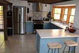 Older home that has been remodeled and updated. First floor features new kitchen, hardwood floors in dining and living rooms, half bath. Some original exposed beams add to the charm. Primary bedroom with ensuite bath, large second bedroom and hall bath and large closets complete the second floor. Rear deck and patio overlooking Andrew Brook. Wood stove in living room heats main floor well.
