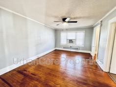 Inside, the split studio layout offers a distinct separation between the sleeping/living area and the kitchen. Enjoy stunning restored hardwood floors in the main living space, complemented by plenty of windows and ceiling fans that bring in natural light and breezes.