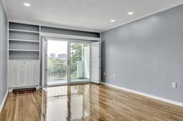 The condo features refinished oak floors, freshly painted rooms, spacious bedrooms with ample closet space and built-in shelving, plantation shutters, wall A/C units, and a jacuzzi tub. A private balcony overlooks the river.