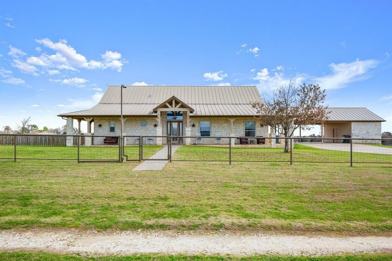 Experience the Ultimate Ranch Lifestyle! Nestled on a sprawling 56-acre expanse in Elgin, Texas, this property offers unmatched freedom, boasting an agricultural exemption and no restrictions. A haven for equestrian enthusiasts and nature aficionados alike, this ranch presents two delightful homes, a functional horse barn, two expansive riding arenas, and verdant hay fields. The primary residence greets you with a warm open floor plan, bathed in natural light streaming through expansive windows framing panoramic vistas of the surrounding countryside. The gourmet kitchen is a culinary oasis, adorned with elegant granite countertops, chic shaker-style cabinetry, a convenient breakfast bar, and top-of-the-line stainless steel appliances. Luxurious tile and hardwood floors grace the interior, complementing the modern ambiance. Enjoy modern comforts such as upgraded electrical fixtures, soaring vaulted ceilings, and a lavish master suite boasting a spa-like bathroom with a generous soaker tub and a walk-in shower featuring dual shower heads. Step outside onto the wrap-around porch and immerse yourself in the serene beauty overlooking two enchanting ponds. The property's exterior is equally impressive, featuring a well-appointed barn with a workshop, two storage rooms, and four horse stalls. Additionally, a charming 2-bedroom, 2-bathroom guest house offers cozy accommodations for visitors. Rest assured with amenities including a generator and a dependable working well. Don't miss this rare chance to own a slice of Texas paradise, where luxury meets ranch living in perfect harmony. Schedule your exclusive tour today and embark on the ranch lifestyle of your dreams.
