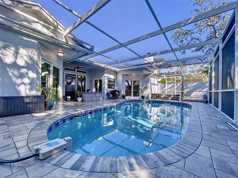 Beautifully updated and newly furnished 3 Bedroom 2 Bath Palm Harbor Home is located in a great community close to Pinellas Trails, Sunset Beach, Howard Park and the quaint downtown Tarpon Springs Sponge Docks! Open floor plan offers a great room with vaulted ceilings and sliding doors leading to the screened-in lanai and pool. Brand New Impact windows and sliding glass doors! Gorgeous newer Kitchen with a huge center island, granite counter- tops and newer stainless-steel appliances open to the breakfast /sitting area with built -ins, including a new Murphy Bed, sliding doors leading to the lanai and pool. Master suite with large walk-in closet and sliding doors leading to the lanai and pool, awesome updated master Bath with a large walk-in shower. Screened in front porch and fenced-in yard, ideal for pets! Newer Flooring throughout, beautiful 2 newer Remodeled Baths, newer A/C and Air Handler, newer Hot water Heater, newly refinished Heated Pool with new pool Pump and newer pool Heater, newer stone Pavers and newer Screens, Freshly Painted interior and exterior. Newer gutters, Garage door and so much more! Great location, a short walk or bike ride to Pinellas Trails, just minutes to Howard Park, Sunset Beach and the historic cobblestone streets of the historic Tarpon Springs Sponge Docks, Close to Advant hospital, 10-15 Minutes to Honeymoon Beach/ Caladesi Island, quaint downtown Palm Harbor and Ozona with restaurants, street events and many boat launches. 10/15 minutes to downtown Dunedin, 15-20 minutes to Clearwater Beach, 30-45 minutes to St Pete and Tampa Airports! Small dog is OK. Lawn and Pool Maintenance Included!