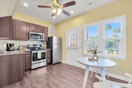 Outside is meticulously landscaped with beautiful palms spanning the whole property. The entire property is already fenced! The front has a storage shed for yard items/lawnmower. The driveway loops all the way around the back yard where you will find two large storage sheds that back up to a gorgeous creek that runs through the back part of the property. There is a small bridge over the creek to a section of the back yard that is unused- let your imagination run wild!! Utilities are based on square footage and are a tenant responsibility added on each month.