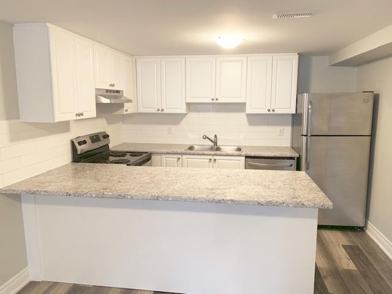 Occupancy for the 950 sq-ft basement 2-bed, 1-bath unit. Minimum 12-month term. All utilities excluded. Tenants Included modern appliances: fridge, dishwasher, stove, washer, and dryer. 1 parking spot included. Amenities include: driveway parking and yard access.
