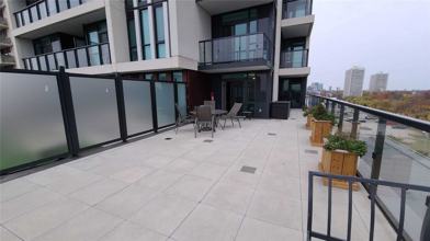 Prestigious Barrington Condo, Rarely Available 1 Bed With Large Private Terrace. Both, Bed And Living Room Walk Out To Terrace. Walking Distance To Subway, Groceries, Parks & All Amenities. 1 Parking,1 Locker & 1 Bike Locker IncludedS/S Fridge, Stove, Dishwasher, Hood Fan/Microwave, Stacked Washer/Dryer. Gym, Party Room, Billiards, Concierge.