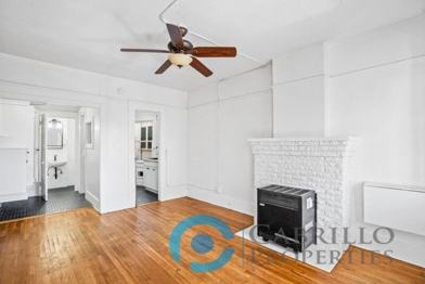 This studio boasts hardwood flooring throughout, vintage architectural details, and ample storage. Residents also enjoy the benefits of a gated community, including thoughtful amenities such as a dog wash station and community BBQ grills.
