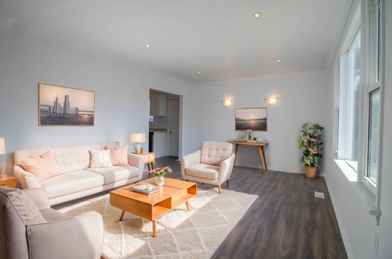 This unit features three well-sized bedrooms, a kitchen with stainless steel appliances, a spacious living area, and a clean three-piece bathroom, it's designed for comfortable living. The unit also includes a private entrance, a fully fenced backyard, private laundry, dedicated parking, an unfinished basement for storage, large windows throughout and central air conditioning. Located close to major highways and parks, and only a 5-minute walk to Fairview Mall, this home offers both convenience and comfort.