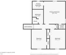 The primary bedroom includes a private en-suite bathroom with a tub. Two additional bedrooms share a second full bathroom, also equipped with a tub.