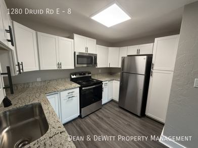 Kitchen has been remodeled with brand new granite counter-tops, white cabinets and white appliances