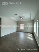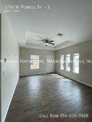 Welcome to 1706 Powell, located in the heart of Edinburg, TX. This modern 2-bedroom, 2-bathroom apartment features an open floor plan with high ceilings and hardwood floors throughout. The spacious master bedroom includes a walk-in closet and master bath for added convenience. The kitchen is equipped with stainless steel appliances, including a stove/oven, refrigerator, and microwave. Enjoy the sleek and modern fixtures, central AC, and the convenience of having a washer and dryer included in the unit. The gated property offers a patio for outdoor relaxation and is pet-friendly with breed restrictions. Tenant pays for electric and water, and lawncare is included. With a 12-month lease, no smoking policy, and 24/7 maintenance support, 1706 Powell is the perfect place to call home.
