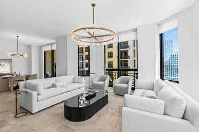 Sophisticated Downtown Luxury with Intracoastal and Ocean Views. Refined living at Two City Plaza, one of downtown West Palm Beach's most coveted addresses. This 2-bedroom, 2 1/2 -bath residence has been custom-designed and curated with the finest finishes. The home features a brand-new modern designer kitchen, Restoration Hardware furnishings and lighting that blend modern elegance with timeless style. Floor-to-ceiling impact windows flood the space with natural light and frame views of the water and city skyline. Both bedrooms offer en-suite bathrooms, while the spacious open corner floor plan is perfect for entertaining. Ideal as a corporate residence, seasonal showcase, or year-round retreat, this residence redefines downtown luxury with a seamless blend of comfort and design. Residents