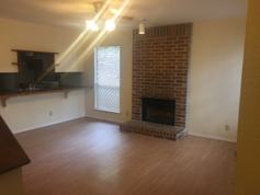 Two bedrooms upstairs with full bathroom. Cute balcony off of the master bedroom upstairs with view of lots of trees. Downstairs has a fire place, vaulted ceiling, 1/2 bath living, dining and kitchen. Lots of storage under the stairs and in garage. Huge fenced backyard with a patio. Washer and Dryer connection in kitchen closet.