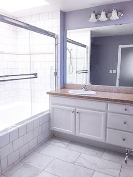 This bright and cheerful unit is 1500+ square feet, and has central A/C and heating, 10-foot high ceilings, skylights, granite countertops, a fireplace, a private patio, washer/dryer in-unit, and more.