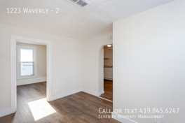 1223 Waverly Ave #2, Toledo, OH is a 2 bedroom, 1 bathroom apartment for rent. It is located in the Scott Park neighborhood of Toledo. It has apartment amenities including outdoor space, assigned parking, air conditioning, on-site laundry, and central heat. Cats and dogs are allowed, making it a pet-friendly apartment.