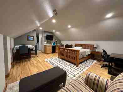 Available today! This fully furnished Airbnb style suite offers amazing views and privacy not found anywhere else. Conveniently located only 7 minutes from downtown Eagle River and less than 1 mile from the Mt. Baldy Trailhead. All of downtown Anchorage can be seen from the overlooking front porch. The suite is equipped with a studio style bedroom with a queen bed, a kitchen, bar, and bathroom.