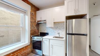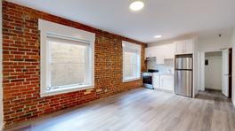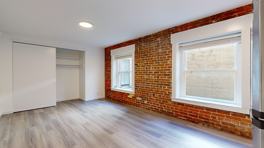 The unit features classic brick wall with windows in the living room gives the timeless cozy feeling the moment you step in.