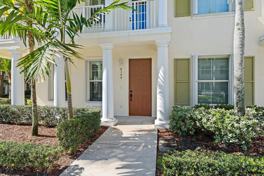 VERY RARE live/work corner unit home available in the heart of Jupiter and Abacoa. This amazing home is one of few in the community that allows you to run a business on the first floor which has a separate entrance and restroom. There is plenty of space to run any business out of and this space can also be separated with a wall from the main entry which would allow someone to lease out the bottom floor to a business and have complete privacy. This area also has plenty of other uses such as a third bedroom, playroom room, billiards room, theater room, truly anything. Walking up the stairs to the second and main floor you will be greeted by the open kitchen featuring stainless steel and never used appliances, granite countertops, and a pass through to the dining room. This area is where you will also find a brand new washer and dryer, dining room, half bath, and your living room that features two separate exterior doors for access to your walk around balcony. This is a great space to relax in after a hard days work or for those Sunday football games. Upstairs you will find two bedrooms both of which feature ensuite bathrooms. The primary bedroom is facing east with incredible lighting, a closet, a small space for a second closet or study, and a full bathroom. This is an incredible unit featuring full storm protection, plantation shutters, real wood flooring throughout, plenty of space for any family, and close to the pool.