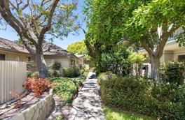 Senior Community Unit Available Now! This upper level, Unfurnished, end unit condo boasts a beautiful and spacious layout with 2 bedrooms and 1.5 bathrooms, along with a carport for convenience. The condo is equipped with newer appliances, laminate flooring, tile, custom cabinetry, and a stackable washer and dryer. The second bedroom features 'Barn Style' doors, providing flexibility to be used as a den, adding a versatile touch to the living space. Additionally, the back covered patio offers ample open space for dining and enjoying picturesque mountain views. Encina Royale, a 55+ community, provides access to amenities such as a pool, clubhouse, gym, and a 9-hole 3 par golf course. Furthermore, the location is conveniently close to shopping, restaurants, and various other attractions. Owner covers HOA dues, water, trash and cable.