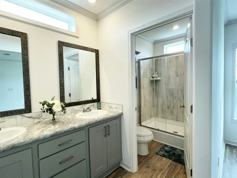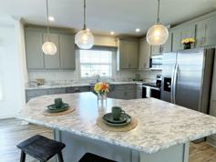 This beautiful, open Skyline home is located in a 55+ age-qualified community, and has everything you're looking for! From the minute you walk in, you'll notice the refined elegance. Kitchen features stainless steel appliances, soft close drawers and cabinets, oversized angled island with room for seating, built-in microwave, and pendant lights over the island. Spacious master bedroom boasts a huge walk-in closet and windows for lots of natural light. En suite master bath features a stunning euro glass walk-in shower and double vanity. Luxury vinyl plank flooring throughout ensures easy clean up. Split floor plan has two additional bedrooms and a guest bath with counter height vanity. Outdoors you'll find a covered carport, storage shed, and back patio for relaxing or grilling. This is a premium location, backing to trees and nature! Landscaping and sprinkler system are already installed, so just move in and enjoy! Call today for a personal tour of this lovely new home!